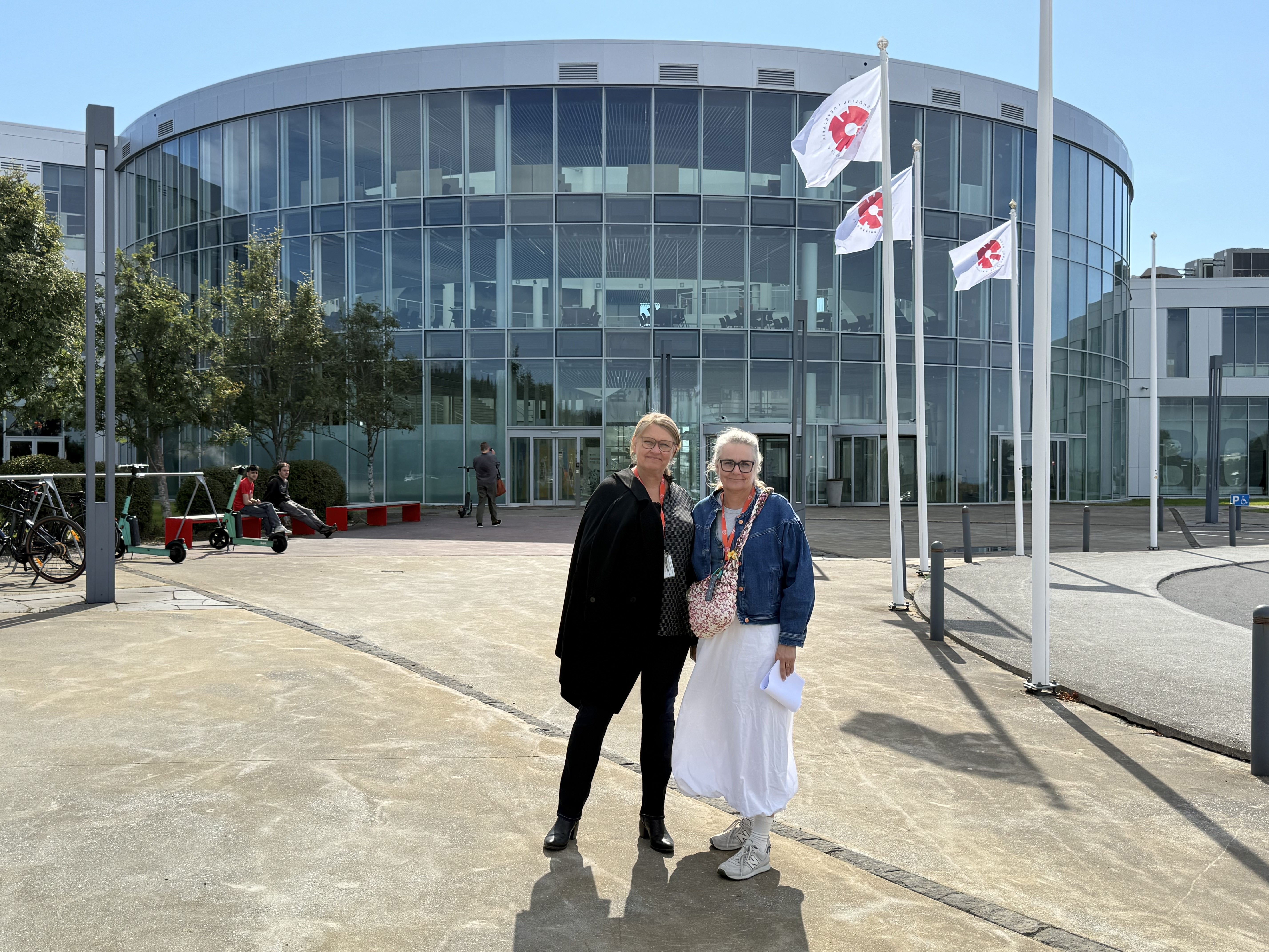 Ingunn Hansdóttir, framkvæmdastjóri sálfélagslegrar meðferðar hjá SÁÁ, og Anna Hildur Guðmundsdóttir, formaður SÁÁ, fyrir utan Háskólann í Reykjavík eftir undirritun samstarfssamnings.