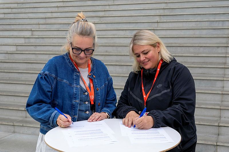 Anna Hildur Guðmundsdóttir, formaður SÁÁ, og Hafrún Kristjánsdóttir, deildarforseti íþróttafræðideildar, undirrita samninginn. Mynd: Háskólinn í Reykjavík.