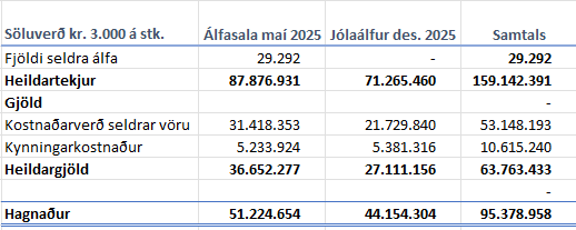 Hægt er að sjá uppgjör Álfasölunnar fyrir árið 2025 með því að smella hér.
